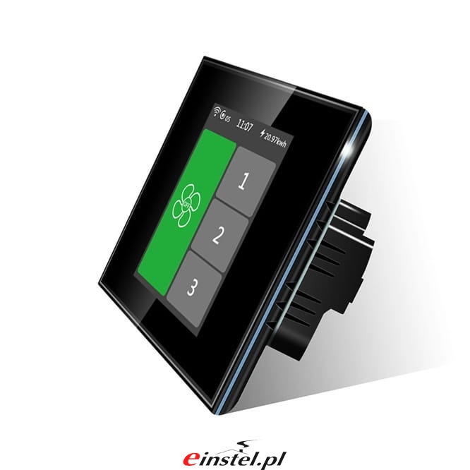 4. Regulator obrotów U9706/U9713. Inteligentny regulator obrotów został zaprojektowany do precyzyjnej regulacji obrotów wirników AC standard, standard+ . Użytkownik może zaprogramować dowolną prędkość obrotów, wyrażoną procentowo dla trzech biegów wentylatora. Regulator wyróżnia się wysoką efektywnością oraz dokładnością sterowania. Dopuszczalne jest sterowanie kilkoma wentylatorami (wirnik standard max. 8 szt./jeden regulator, wirnik standard + 125 max. 6 szt./jeden regulator, wirnik standard+ 150 max 3 szt./jeden regulator) , jeżeli ogólny użytkowany prąd nie przewyższa skrajnie dopuszczonej wielkości poboru prądu regulatora. Występuje w kolorze czarnym oraz białym. Wyposażony połączenie wi-fi, możliwość zdalnego sterowania w aplikacji tuya/smart life, timer, statystyki zużycia energii.