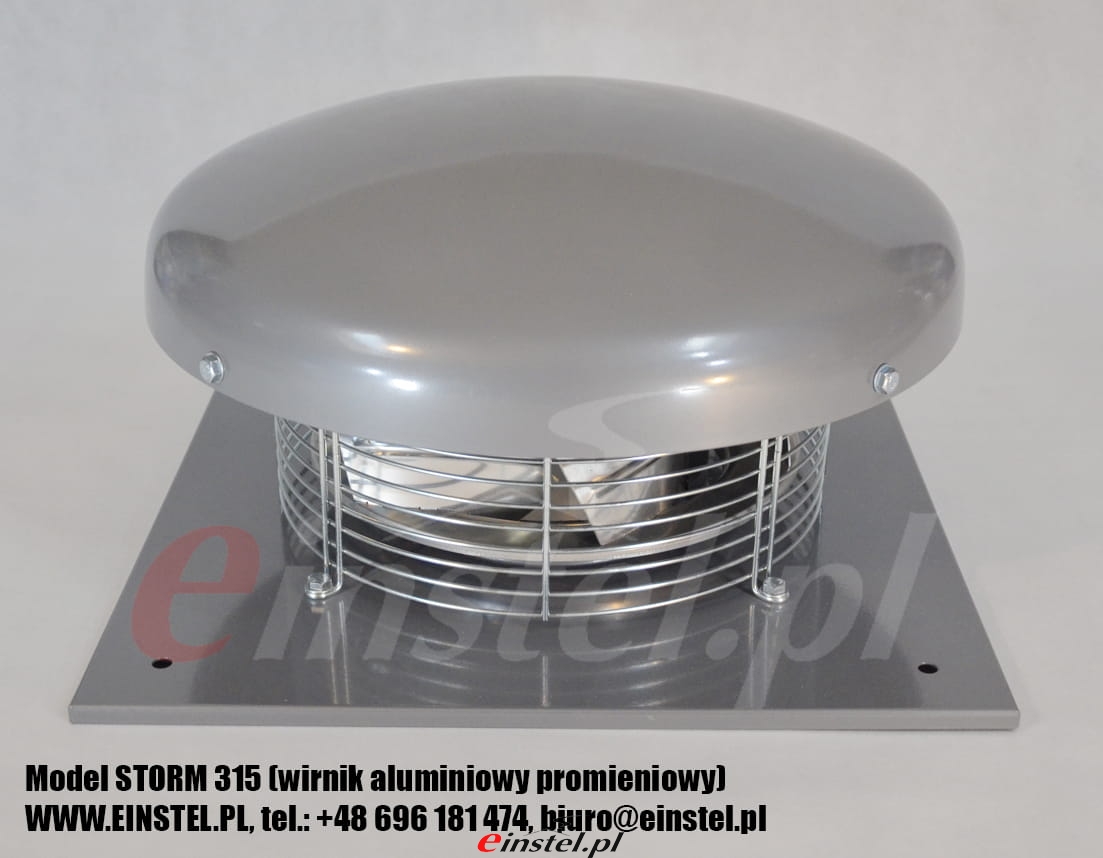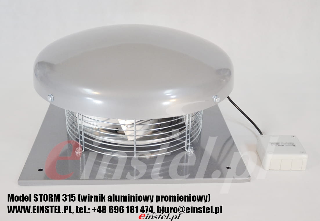 Wentylator jest solidnie wykonany z ocynkowanej stali, która została dodatkowo pomalowana proszkowo. Dzięki temu urządzenie jest odporne na niekorzystne warunki atmosferyczne i zachowuje wysoką trwałość nawet w trudnych warunkach zewnętrznych. Model STORM spełnia wszelkie obecnie wymagania i potwierdza to deklaracja CE. Zaletą tego urządzenia jest dobra wydajność oraz wysoka jakość przy niewygórowanej cenie. W cenie znajduje się również podstawa (skrzynia) kątowa pozwalająca na montaż urządzenia na dachu skośnym. Podstawa wykonywana jest indywidualnie pod konkretny kąt dachu.