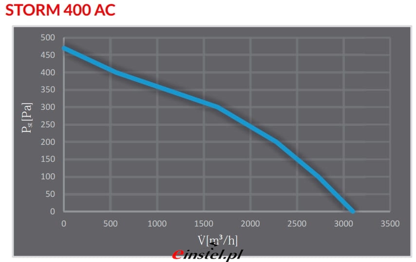 Dane techniczne wentylatora dachowego STORM 250 AC: