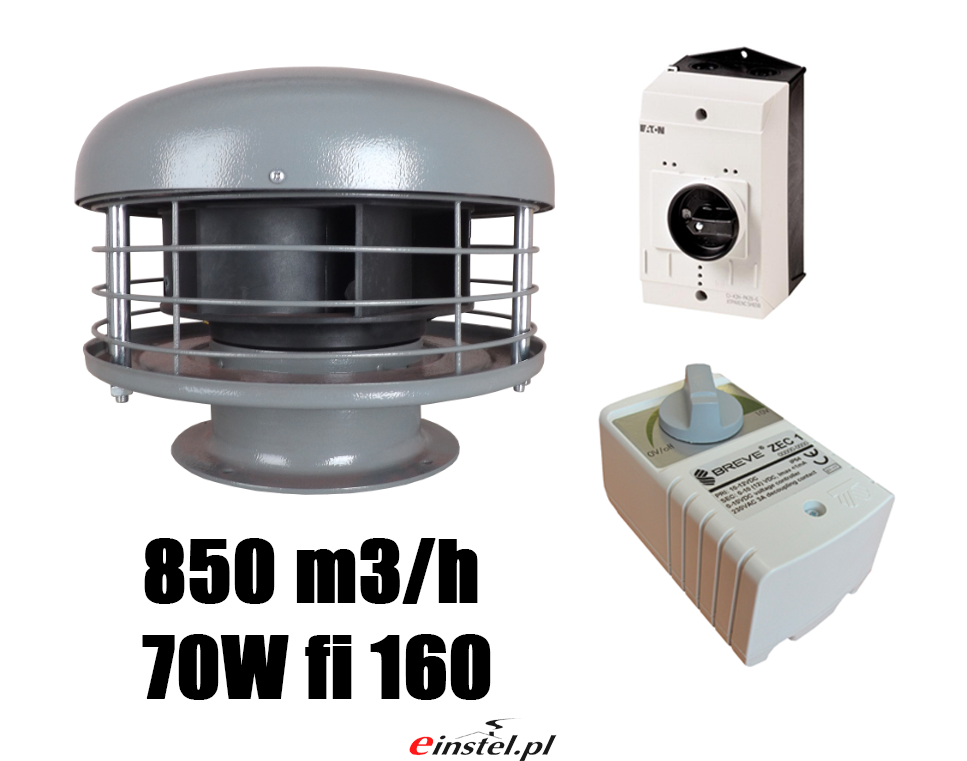 Wentylator dachowy WDS 16A EC - 850 m3/h 70W 230V + REGULATOR OBROTÓW EC + WYŁĄCZNIK SERWISOWY - ZESTAW FI 160